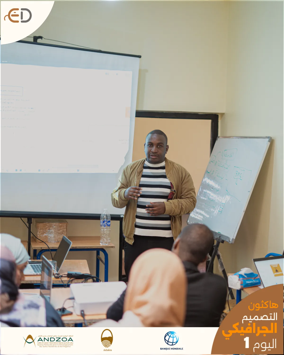 منصة E-DOUAR تجربة محاكاة حقيقية لبيئة عمل وكالات التصميم (Design Agencies). تدرج الهاكاثون بيداغوجياً من التفكير